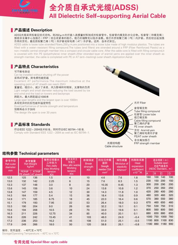 产品名称:全介质自承式光缆(ADSS)